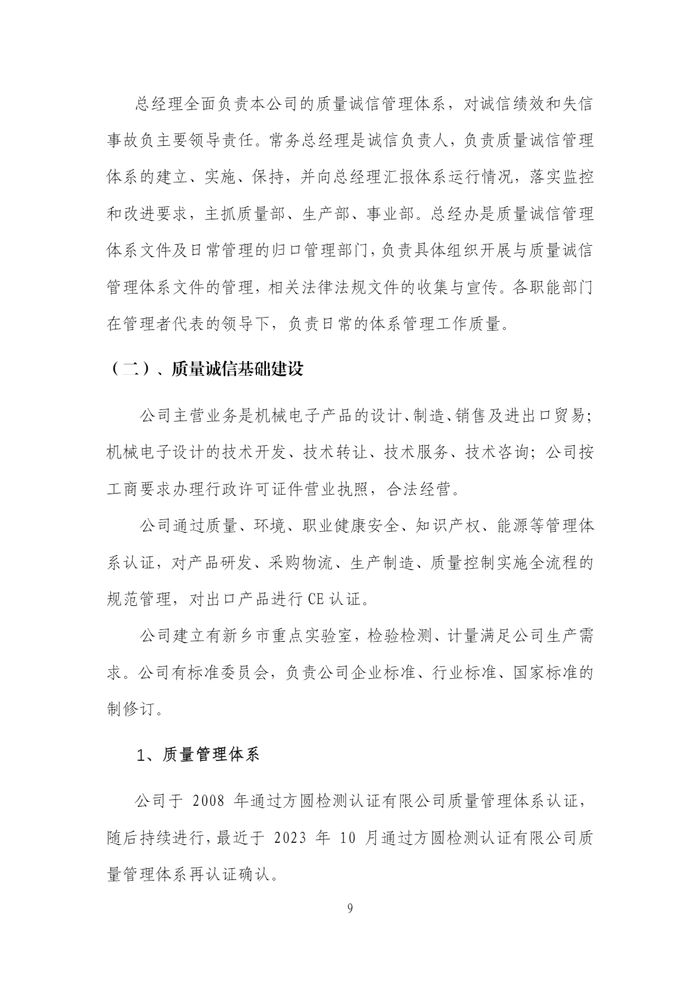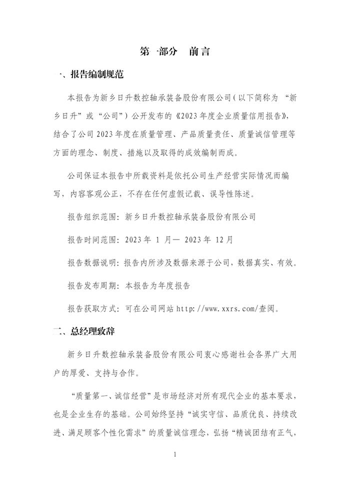 新乡日升2023年度企业质量信用报告