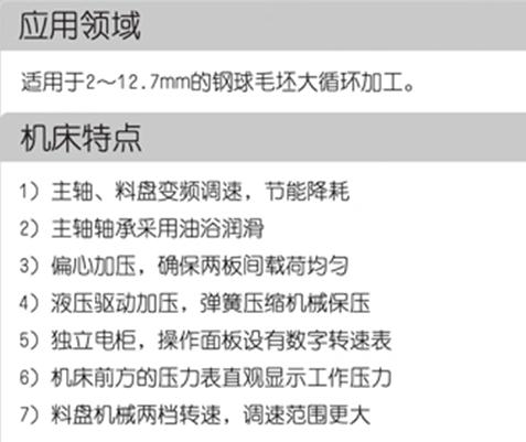 本机床是轴承厂和专业钢球制造厂加工钢球用的专用机床,适用于2~12.7mm的钢球毛坯加工。